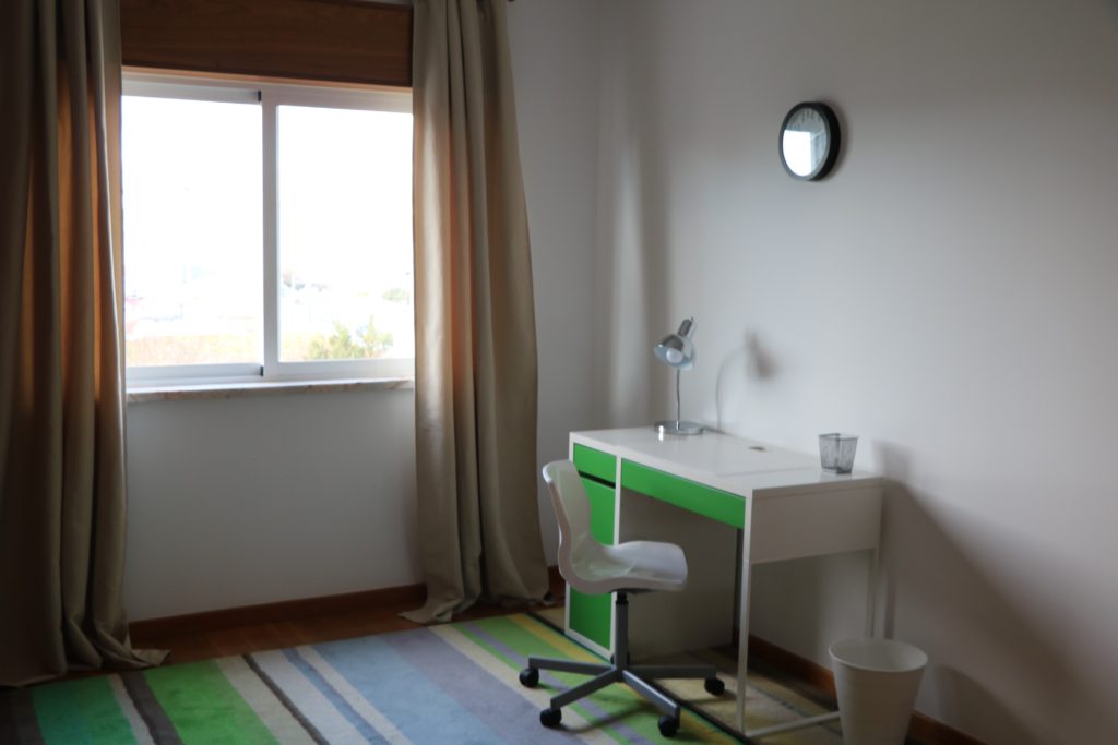 This is one of the two single rooms from the Buzano Cocoon. It has an individual bed with a duvet, big fitted wardrobes with hangers and shoe storage, study area next to a big window. The bathroom right next to the room is only shared by the next door student. They also share the big kitchen with all the facilities and a laundry area. You can chill out in the lovely big balcony and enjoy the view or have a nice meal in the big dining/living area. Residents of this cocoon have access and use of the swimming pool facilities at the Parede Cocoon.